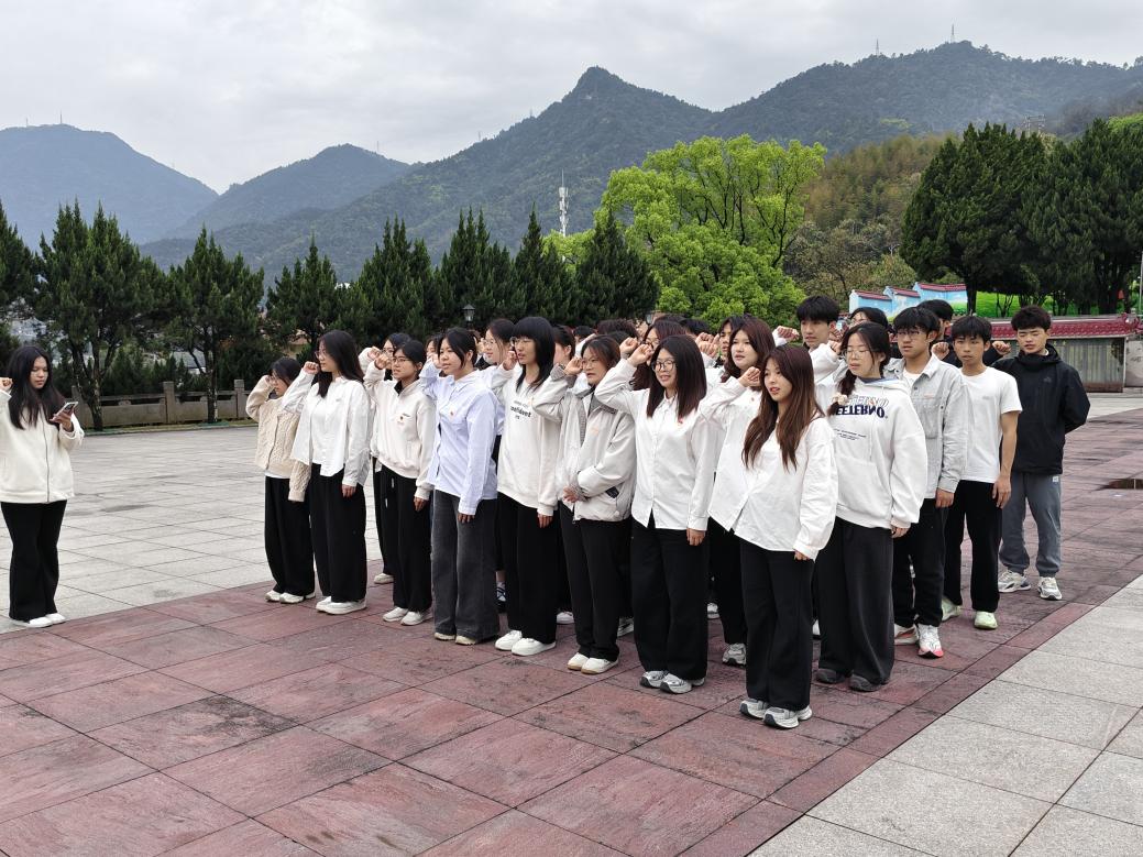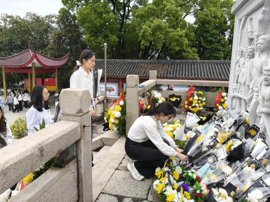 下午三时,全体参与人员整齐列队,神情肃穆,在革命烈士纪念碑前集体默哀一分钟,向为民族解放和国家富强英勇献身的革命先烈致以深切哀悼与崇高敬意。随后,学生代表带领全体人员庄严宣誓:“我志愿继承革命先烈遗志,铭记历史,缅怀英烈,传承红色基因,弘扬革命精神。坚定理想信念,筑牢信仰之基,严守纪律规矩,勇于担当作为,不负时代,不负韶华,以青春之我、奋斗之我,为民族复兴、国家富强贡献全部力量!”铿锵誓言在陵园上空回荡,彰显了新时代青年继承先烈遗志、矢志报国的坚定决心。宣誓完毕,同学们手持白菊与黄菊,依次走向烈士纪念碑,敬献鲜花、鞠躬致意,寄托对革命先烈的无限追思。献花结束后,全体人员有序参观烈士陵园,瞻仰烈士事迹展板,聆听革命英雄的奋斗故事。