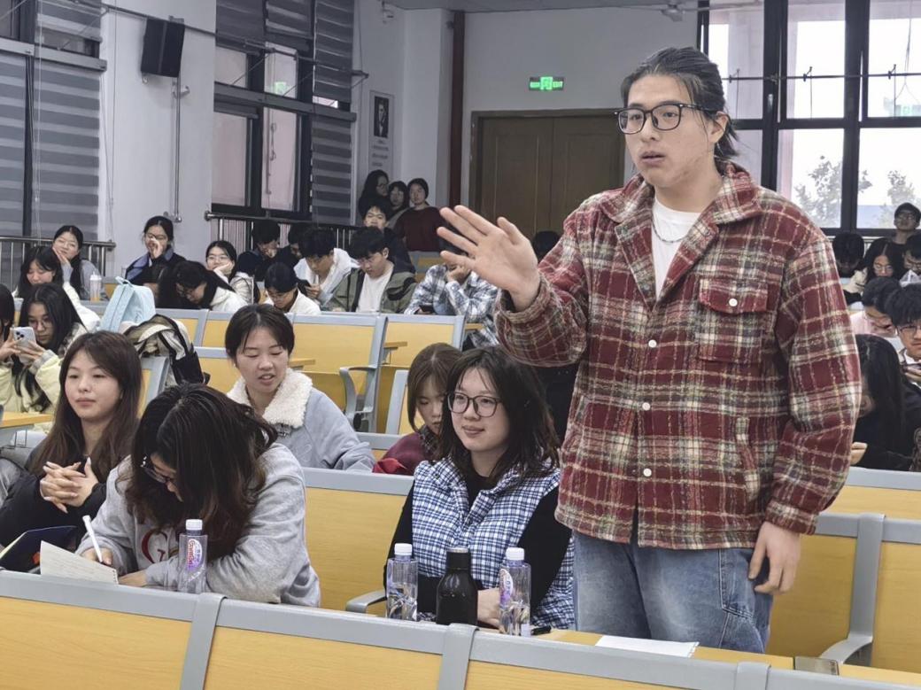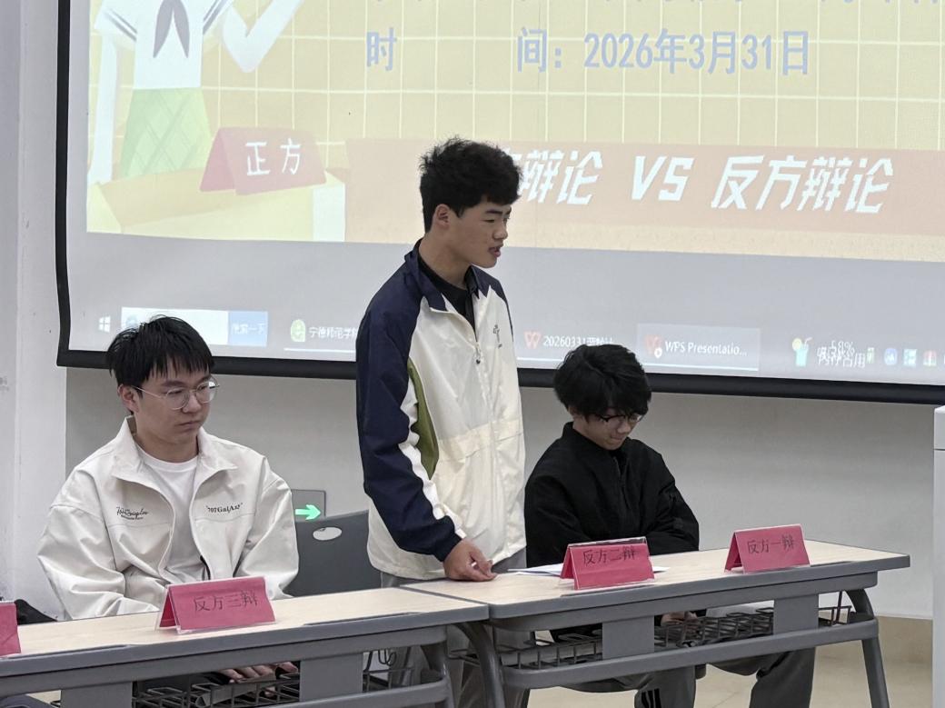 2026年3月31日海洋学院在医教楼101开展海洋学院第三届辩论赛“明法崇德,辩以正行”活动(第二组反方三辩发言)