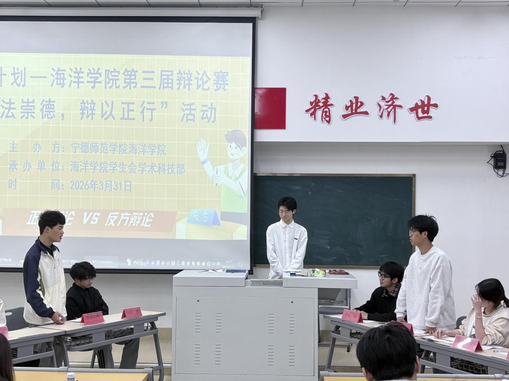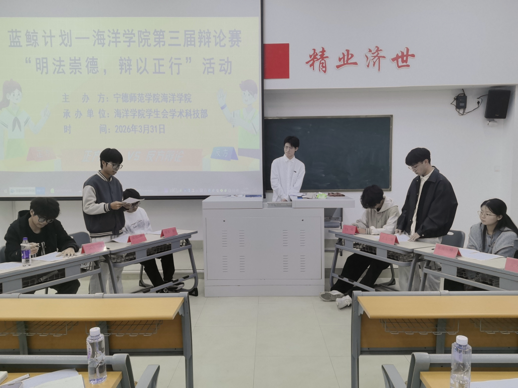 2026年3月31日海洋学院在医教楼101开展海洋学院第三届辩论赛“明法崇德,辩以正行”活动(第三组质询环节)