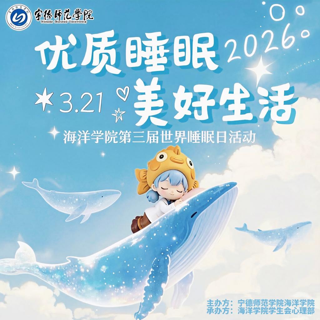 为积极响应2026年世界睡眠日“优质睡眠,美好生活”主题,聚焦大学生睡眠健康需求,海洋学院于2026年3月20日至26日组织开展第三届世界睡眠日系列宣传教育活动。活动融合线上科普与线下互动,精心组织“早安周递”睡眠日特辑、睡眠主题展板打卡及“卡牌启愈,优眠焕生”分享等活动,引导青年学生重视睡眠、科学睡眠,以积极健康心态调节情绪压力、保持昂扬状态、践行健康生活。