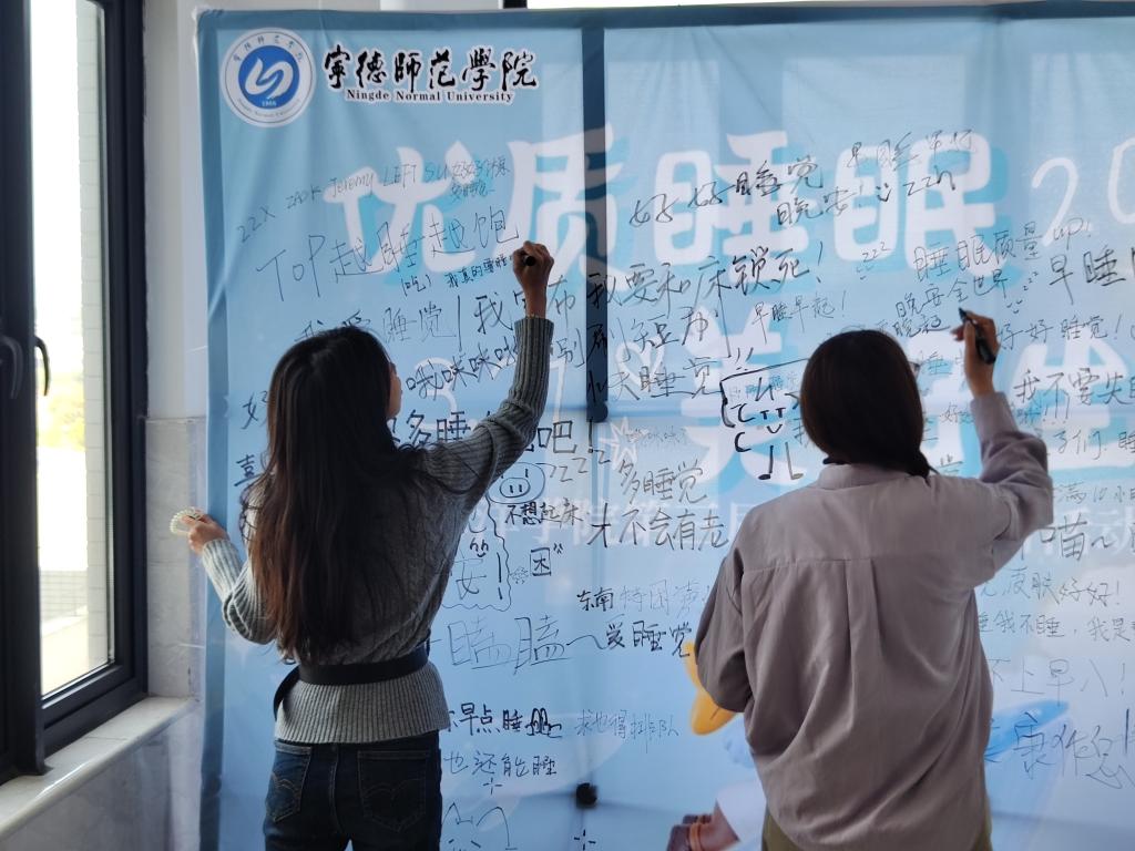 2026年3月22日海洋学院在医教六楼举办世界睡眠日“优质睡眠,美好生活”打卡活动(同学们在展板上留言)