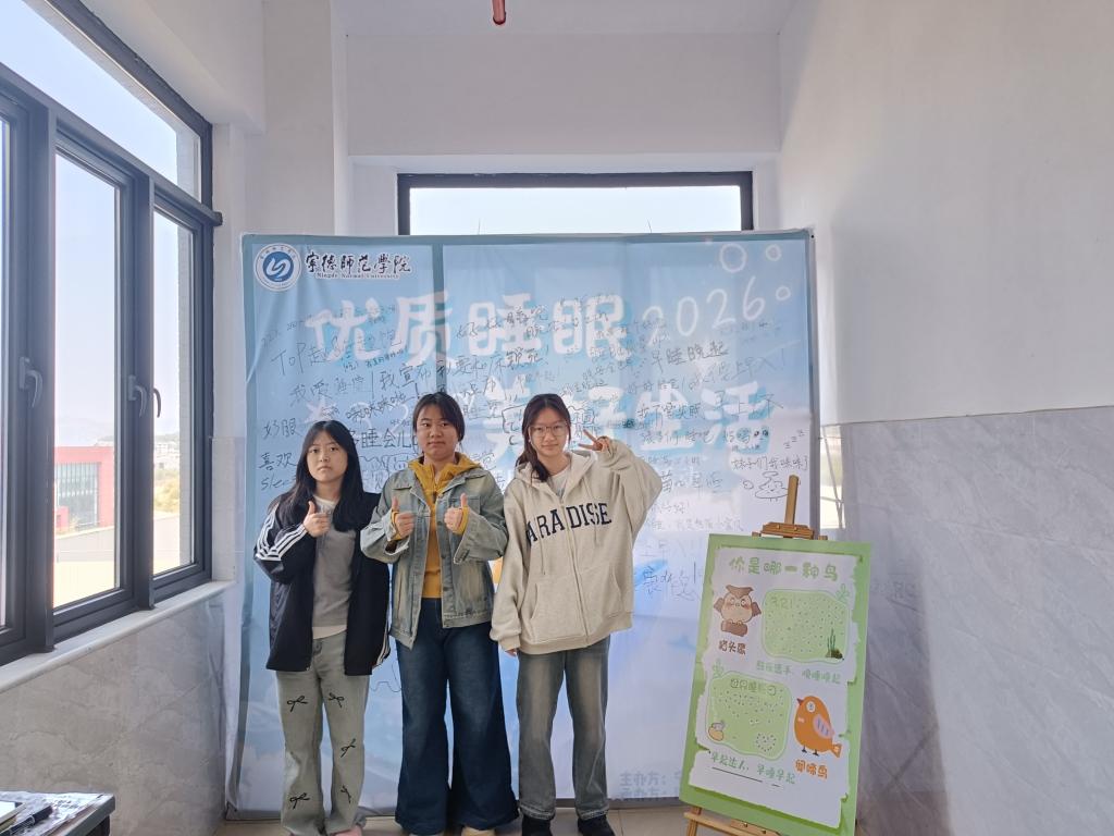 在学业压力、电子产品依赖及作息紊乱等多重因素影响下,熬夜、入睡困难、睡眠质量不佳已成为大学生群体的普遍困扰。值此第26个世界睡眠日之际,海洋学院紧扣“优质睡眠,美好生活”的主题,于2026320日至26日在医教楼六楼精心组织了睡眠主题展板打卡活动。