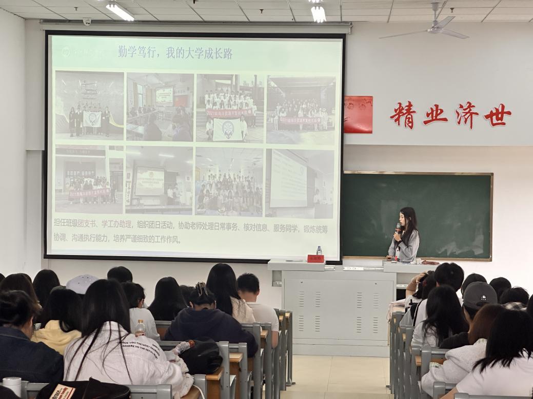 互动环节中,同学们围绕考研与基层就业平衡、非对口专业适配性等问题踊跃提问,张丽梅一一耐心解答,表示“基层是能力的练兵场,也是青春价值的最好实现地”。最后,她以“以青春赴山海,以奋斗启征程”寄语在场同学。