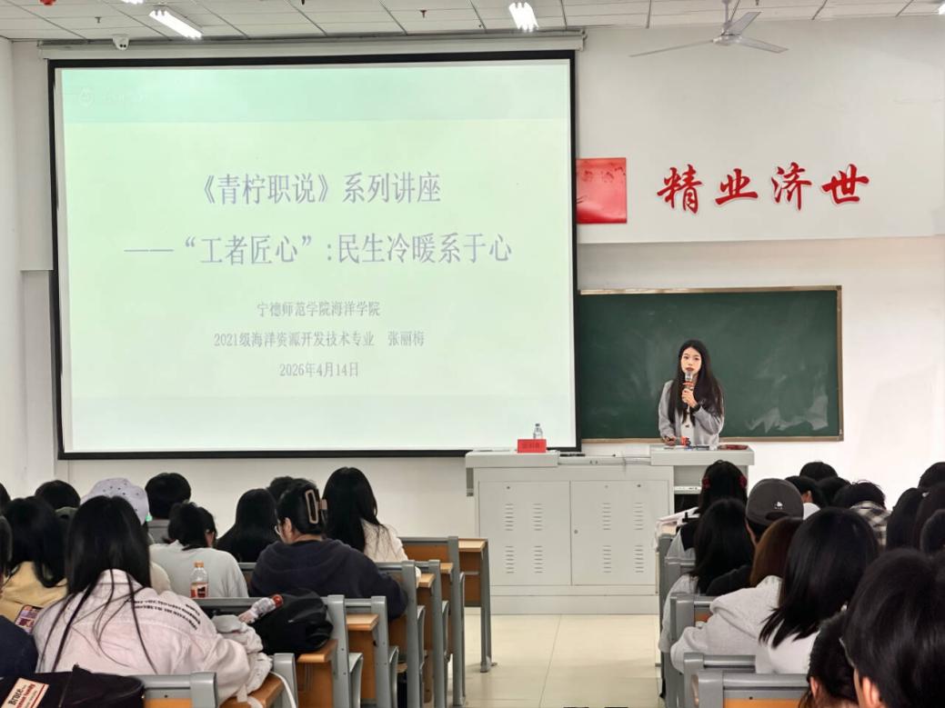 2026年4月14日海洋学院在医教楼101顺利开展《青柠职说》系列讲座之“工者匠心”:民生冷暖系于心(开展就业、实习工作交流)