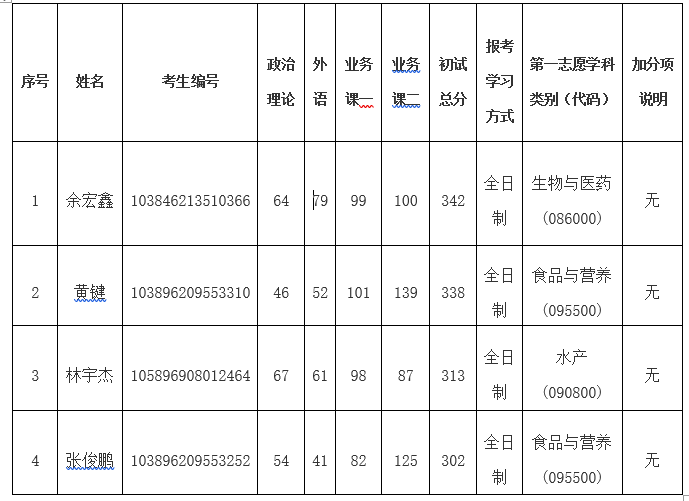 根据我院2026年硕士研究生招生第一批调剂复试工作安排公告及调剂报名情况,现将我院2026年硕士研究生招生考试生物技术与工程专业第一批调剂复试名单予以公布如下: