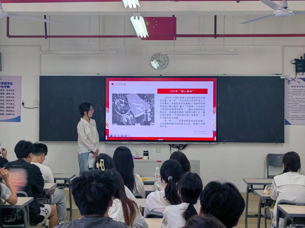 随后,党课转向了抗日战争中的历史伤痛与警示。另一名学生党员李晨滢通过电影《南京照相馆》引入,讲述南京大屠杀、731部队和516部队的暴行,揭示了日本侵略者在中国犯下的滔天罪行。让更多人了解了那段黑暗的历史,普通南京百姓传递出中华民族宁死不屈的气节和永不服输的坚韧品格。