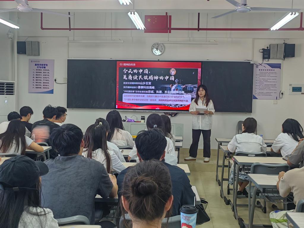 在纪念抗日战争胜利80周年之际,为深入学习党的历史,传承红色基因,弘扬伟大的抗战精神。2025年9月27日,我院“海韵青马研习班”于医教601开展了一场以“弘扬抗战精神”为主题的微党课活动。本次党课结合了杨靖宇将军事迹与抗日战争中的历史伤痛与警示,旨在引导我院积极分子铭记历史、缅怀先烈,从历史中汲取智慧和力量,为实现中华民族伟大复兴的中国梦贡献青春力量。